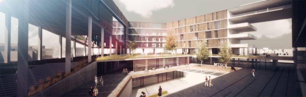 Due to the space between the intersections, our proposal has lead to pedestrian ways through the building. Climate and temperature data of city of Mersin has shaped the main idea behind the proposed design. As a base of the design, commercial and office spaces are separated with a horizontal volume.